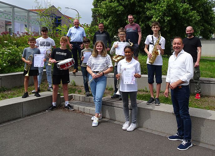Brosig Nico (Trompete, MV Trennfurt), Daniel Julian (Saxofon, MV Mümlingtal Mömlingen), Eck Chiara (Trompete, MV Edelweiß Sulzbach), Hofmann Emil (Schlagzeug, MK Rebläuse Bürgstadt), Hummel Johannes (Saxofon, Trennfurt), Reuthner Jonathan (Trompete, Sulzbach), Zöller Timo (Flügelhorn, Trennfurt)